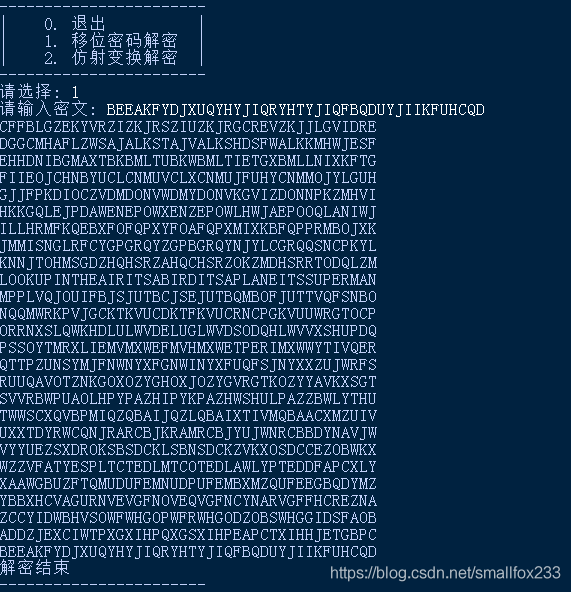 print("| 1. 移位密码解密 |")