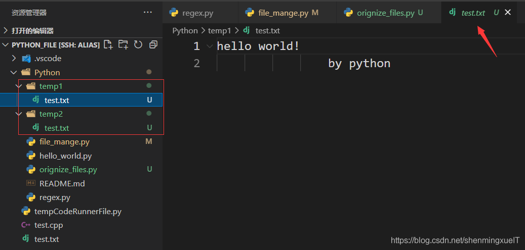# 拷贝test.txt 文件到temp1文件夹下