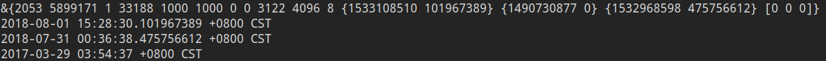 因为Stat_t里的时间都是syscall.Timespec类型,所以我们为了输出内容的直观展示,需要一点helper function: