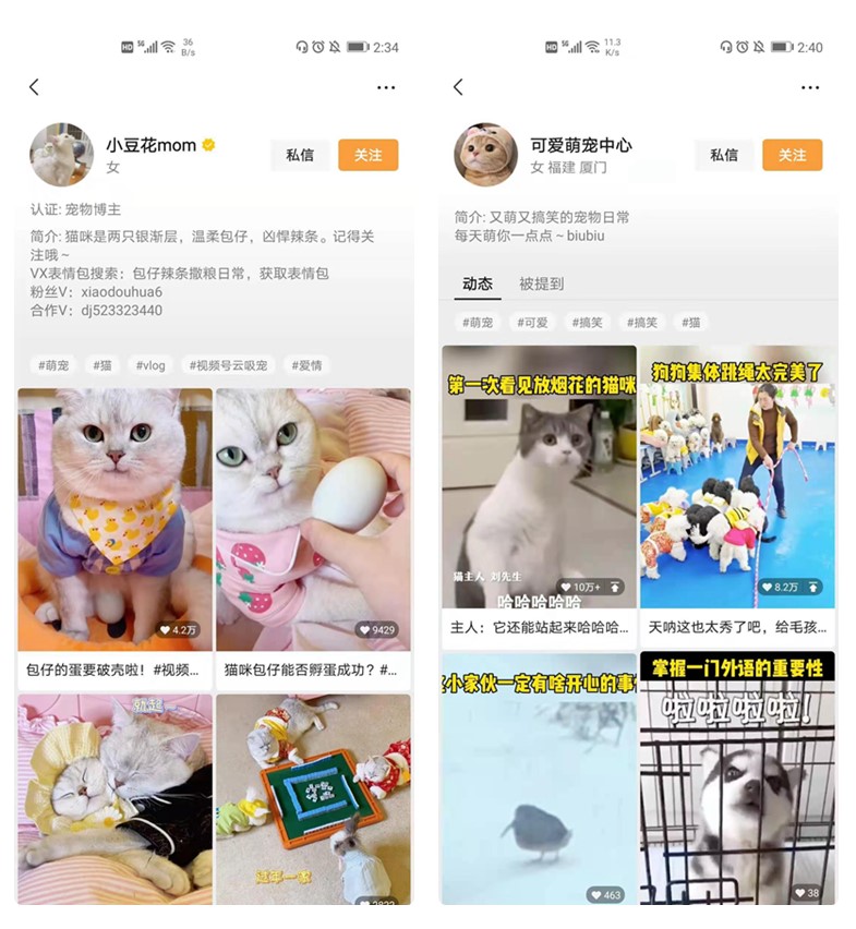 相对来说,在抖音、快手以及B站平台上,萌宠类视频更多多以宠物为主角的剧情,泛娱乐化内容偏多,偏向于主人视角。视频号上这类型的账号是比较少的,但有着很大的发挥潜力。