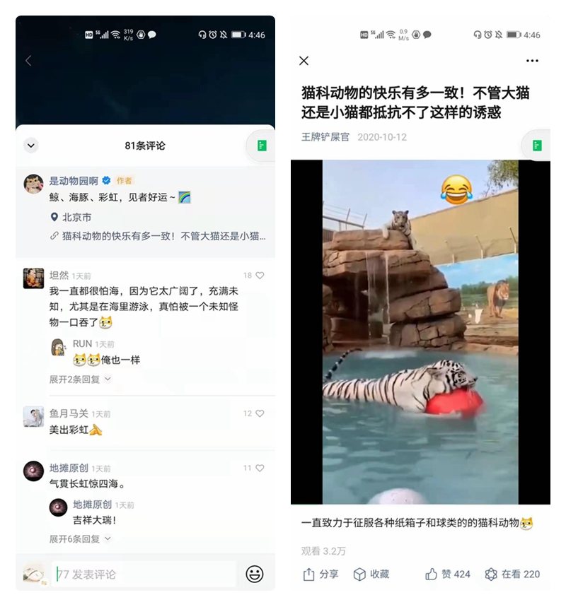 【是动物园啊】发表的作品并没有局限于家庭常见猫、狗这类的宠物,而是将取材放大到整个自然界,因此可收集的素材更为广泛。