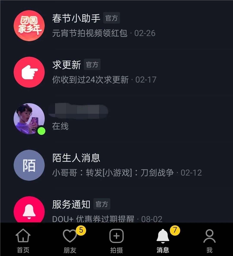 目前,抖音已经上线了好友在线显示的功能。这一功能也有利于方便用户在抖音沟通的及时性,从产品上增加了用抖音沟通的需求(更低的使用成本,了解对方在线状态,方便获得及时性反馈)。