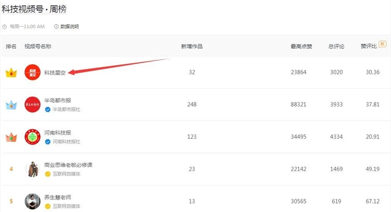 今天,站长之家主要跟大家分享曾拿下视灯奖“年度最佳科技视频号”【科技星空】。根据第三方平台视灯数据显示,该视频号位居科技视频号周榜第一名。