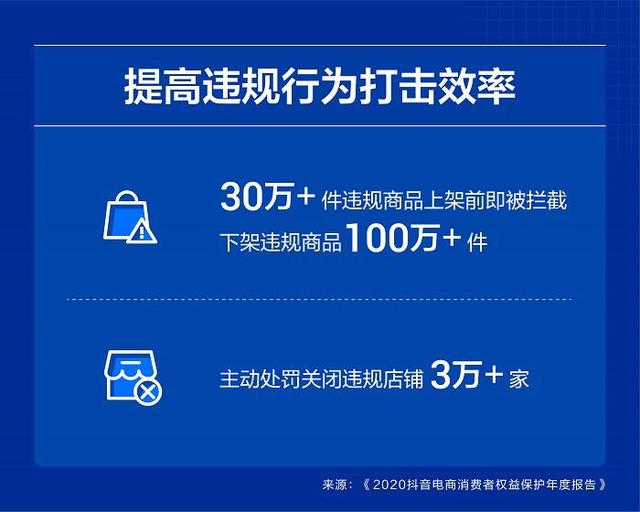 今日,抖音电商发布《2020抖音电商消费者权益保护年度报告》,报告显示该平台通过技术手段识别超4万次店铺违法违规行为,在上架前成功拦截违规商品超30万件,累计下架违规商品超百万件。