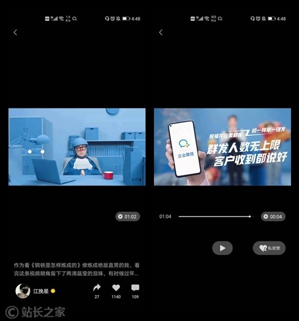 不过根据站长之家观察,该账号商业变现的能力相当不错,目前已经接了好几个商业广告。主要帮助直发品牌方提供视频,比如直发小红书214独爱之夜、京东年家电货节、企业微信等等品牌视频,这样的广告合作方是很多人羡慕不来的。