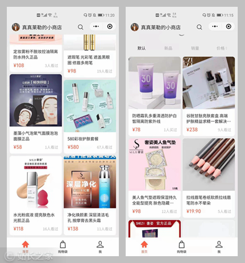 【真真莱勒】另外一个变现渠道就是开设微信小商店,该商店主要出售微商美妆产品,比如防晒霜、眉笔、眼影、口红等等。