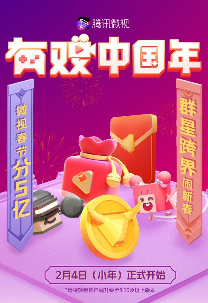 据了解,今年微视除了主会场之外,设了王者荣耀、和平精英、微剧、好剧速看四大分会场。从小年开始,用户在这五大会场,完成刷视频、看直播等任务,就可以获得相应的牛币。此活动奖金共为两亿。