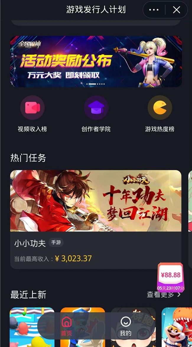如今,抖音与小游戏的开发者依然靠广告分成,和微信小游戏相比仍是换汤不换药。铅笔道还观察到,抖音“游戏发行人计划”的banner推荐和热门任务中出现了越来越多手游的身影。当大厂环伺抖音,游戏板块变得越来越重时,开发小游戏的中小团队能有多大的生存空间,也是个未知数。