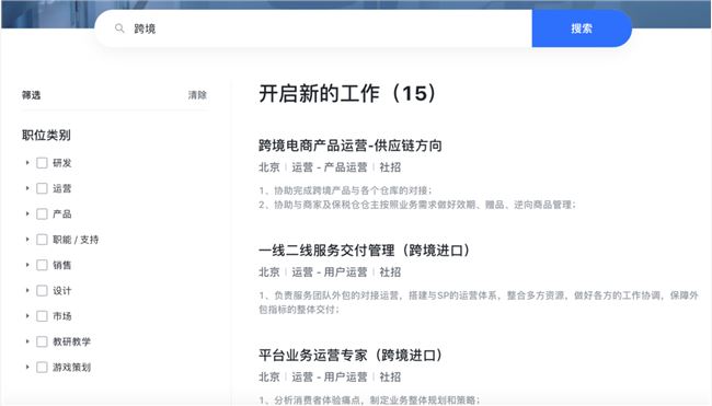 另外,Tech星球还发现,在12月初,字节跳动的招聘官网,以及其他招聘平台上发布了多个有关跨境电商业务的职位,从产品运营、服务运营、推广运营、公务关系,到供应链运营等一条全链路的职位清晰可见。