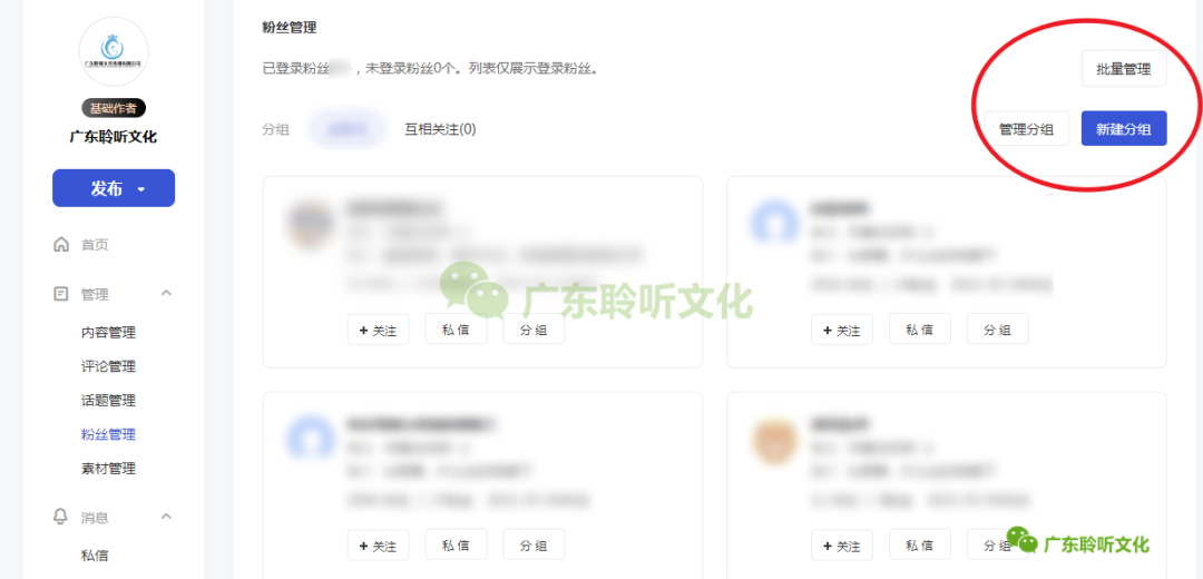 操作入口:百家号后台-「管理」-「粉丝管理」。