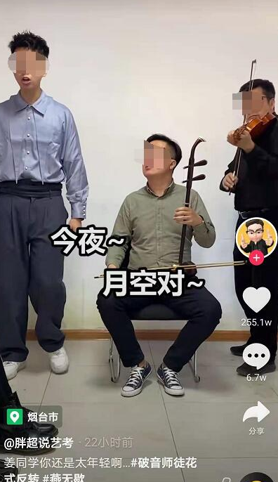 比如说“胖超说艺考”,以该账号最新发布的视频#江同学你还是太年轻啊#为例,该视频22个小时获赞255万个,评论6.6万个,推测7天涨粉中有不少就是来自这条视频。