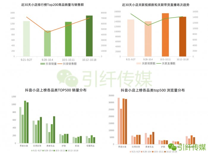 3.各品类商品推广势头较好,男女装仍是抖音流量支柱,母婴成品将是抖音卖货的黑马品类。