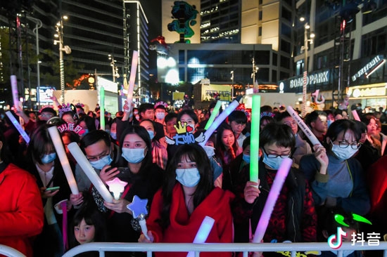 各位达人轮番上场表演拿手好戏,台下观众用力挥舞手中的荧光棒,璀璨星光伴随着阵阵歌声,浓郁的Live氛围将整条街引爆。