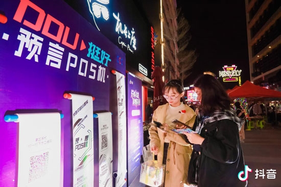 除了精彩的表演,现场还有丰富多彩的互动设置。恰逢圣诞,现场浓厚的节日氛围布置吸引到了很多观众去线下打卡。带着各种发光发箍的观众,与这场抖音直播精心打造的嘉年华完美融合。提款机、预言POS机迅速成为年轻人拍照背景板,扫一扫二维码预言便可以预言未来的幸运、甜蜜。在即将告别2020的特殊时刻,一句简单的“抚琴有人听,心事有人叙”就足以温暖当下。 在「DOU挺好」时光机前永远人头攒动,观众在时光机里留下甜美的笑颜,诉说照片的故事,把珍贵的回忆制作成留声明信片永远定格。