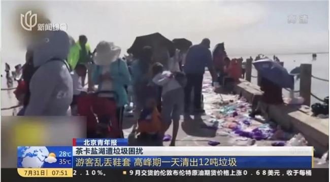 天空之境:茶卡盐湖在抖音上火了以后,变成了网红打卡景点,一天能清理出12吨垃圾。