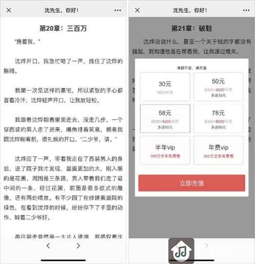 突然又有一个链接跳转出来,要求你充值金币才能“继续看”,一般起充是三十元。