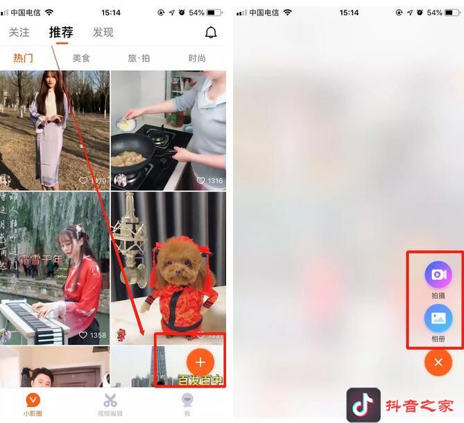 第一步:上传拍好的视频图片,或者是选择拍摄进行拍摄。