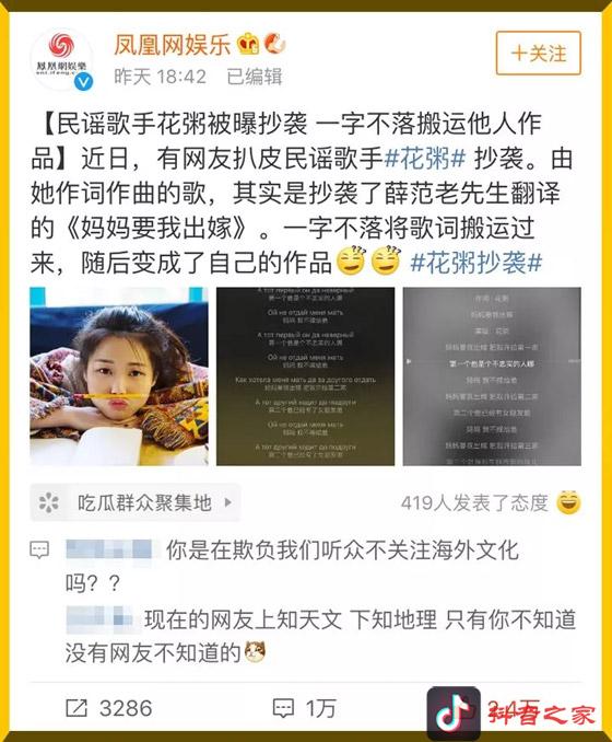 花粥也因此被冠上了“抖音民谣女王”的光荣称号。