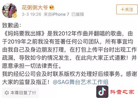 很快,花粥本人便出来致歉,表示是“在打包上传平台时出现工作疏漏”,把责任推了个一干二净!