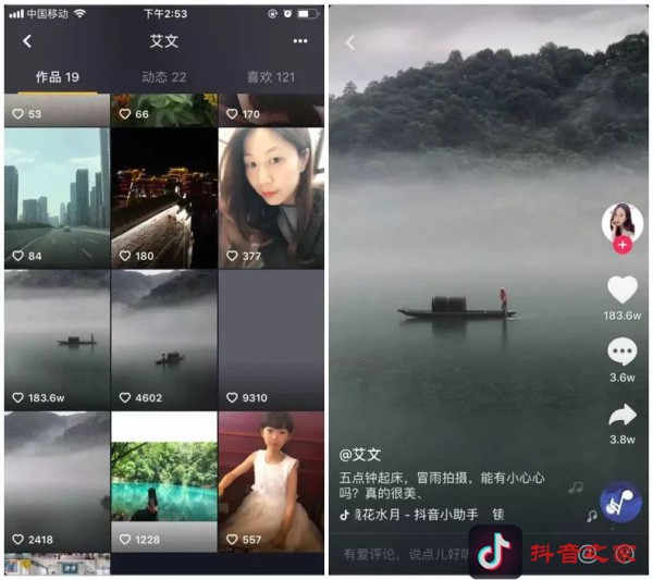 而最后火起来的视频选用了“镜花水月”主题的东方音乐,旋律空灵,极其符合雨后雾气蒙蒙的画面,让人联想到“孤舟蓑笠翁”、“一蓑烟雨任平生”等诗句,美感异常强烈。