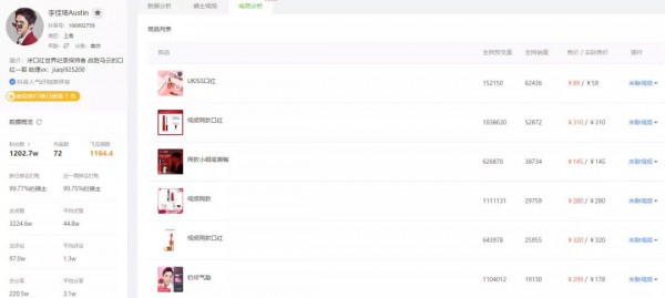 他的走红也绝非偶然,在入驻抖音之前,他在淘宝就有着不菲的口红带货成绩,还曾和马云打过擂台比拼带货能力。