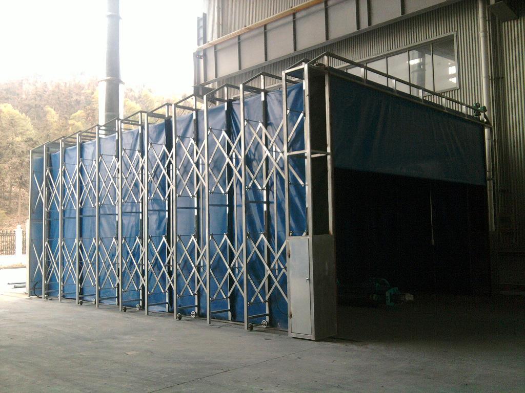 1.伸缩移动工作区是专门为解决较大型工件搬运周转困难而研发的实用型产品; 2.操作使用简单方便; 3.整体为框架传动结构,每组框架间均有阻燃PVC布密封连接,安装快捷、外形美观; 4.工作中伸缩移动房体沿地面铺设的轨道伸缩行走,采用两边分别驱动,互相连锁的方式运行,机械运行安全稳定; 5.工作区内安装有防爆照明灯,可满足生产中的照度需要; 6.可根据顾客的实际生产需要定做各种型号的非标尺寸。