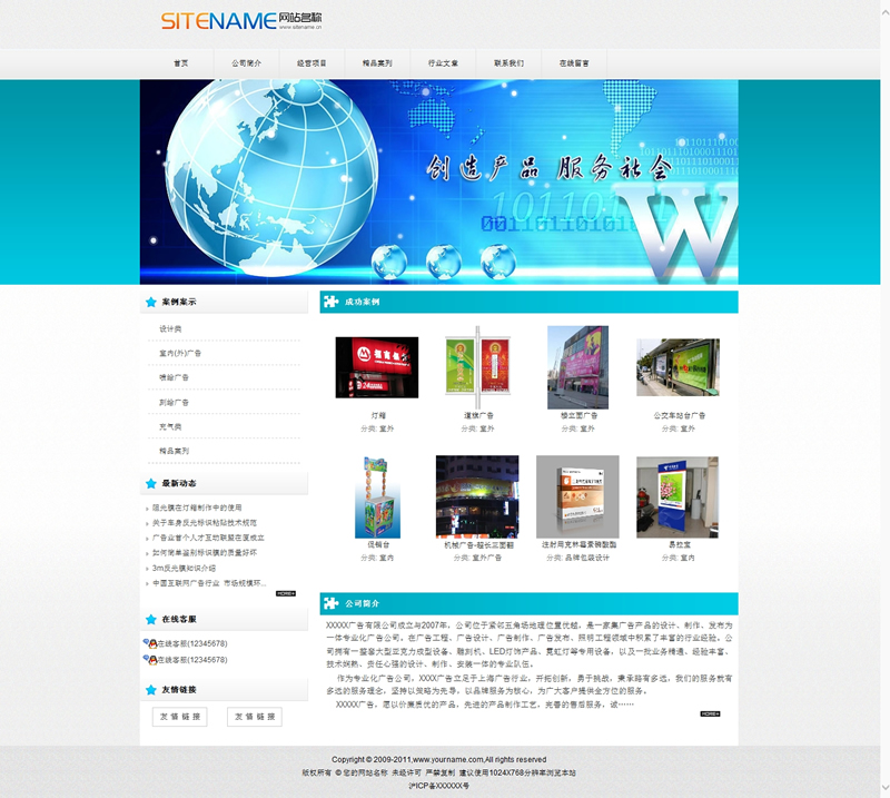 一、整套模板纯手写div+css代码,符合W3C标准,完美兼容 IE6/7/8/9/10、Firefox、Chrome、Opera、Safari、360浏览器等主流浏览器,经测试无错位,加载速度飞快。
