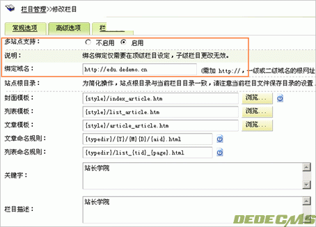 1. 概念如果一个域名是abc.com ,是由一个字符串加一个域名尾,中间用“.”号隔开。这就是一个一级域名,如果在顶级域名前在由“.”隔开加上不同的字符,比如bbs.abc.com,那么我们就说bbs是顶级域名abc.com的一个主机名,bbs.abc.com就是一个二级域名。我们在使用DedeCMS建站的时候往往需要用到栏目绑定二级域名。