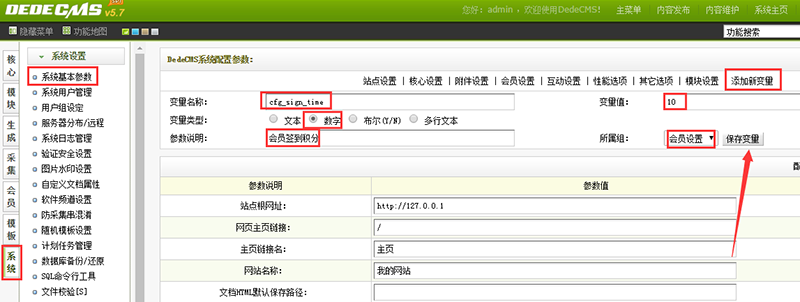 点击保存变量即可(变量值10表示签到增加10积分),如下图所示