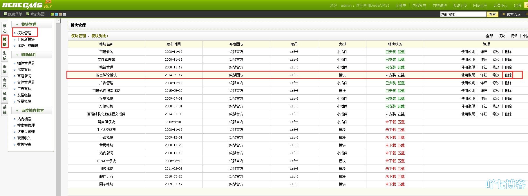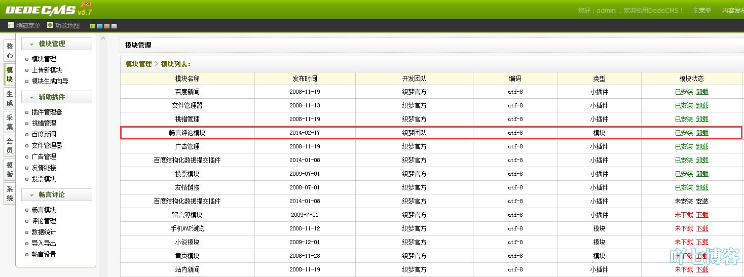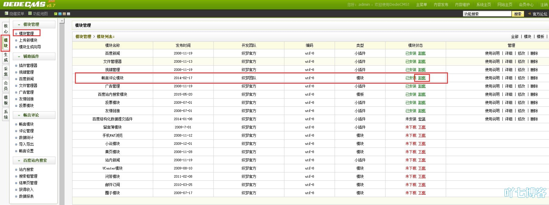 1、先将原有的畅言模块删除,点击【模块】-【模块管理】,找到畅言评论模块,选择卸载