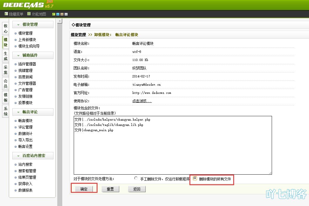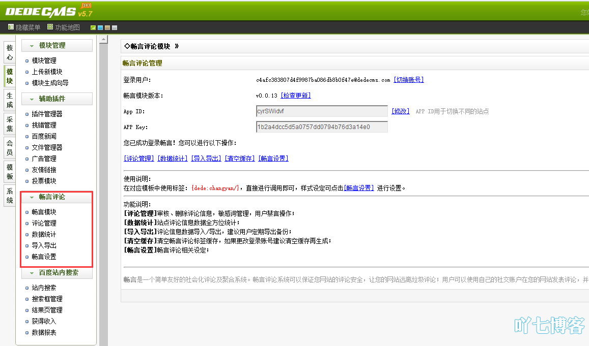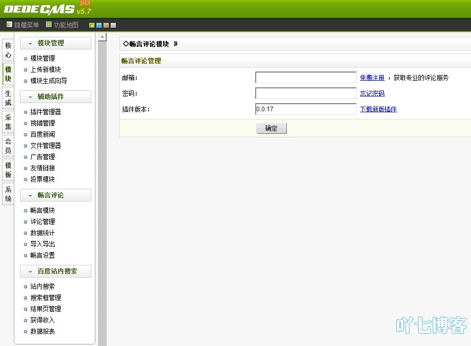 2、如果您安装dedecms时已经安装了自带的畅言模块,便可以直接使用了。