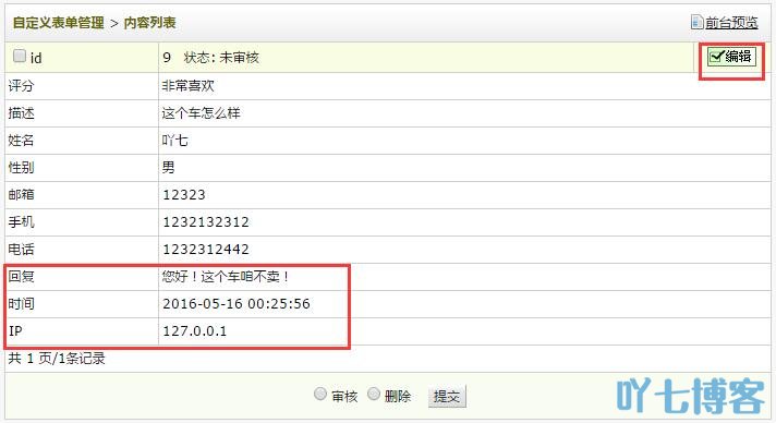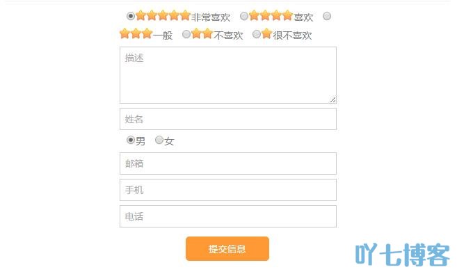 前台还可以采用星星评价效果,比如自定义表单的字段pingfen,数据类型为radio,前台增加星星就好,样式自己发挥了。