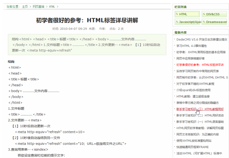 有的时候我们在做内容页时,左侧或者右侧调用的是文档