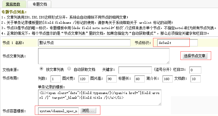 ③节点容器模板在/templets/system/channel_spec_note.htm,可以修改调用的DIV容器的样式;
