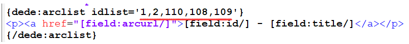 2、dede:arclist idlist='' 标签里加入orderby='idlist'