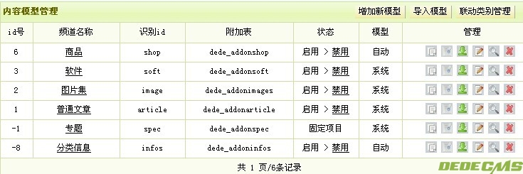 也就是说ecms强大的多表储存,dede接近完美的实现了,也可以新建自段,这一点,我很满意。
