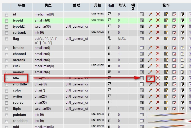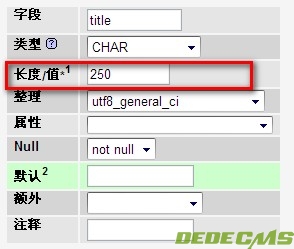 3)进入phpmyadmin——点击dede_archives 进入表——title——点击编辑——输入250.