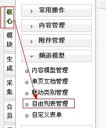 1、进入后台管理菜单。核心>自由列表>增加列表。这样就可以成功添加一个自由列表了。