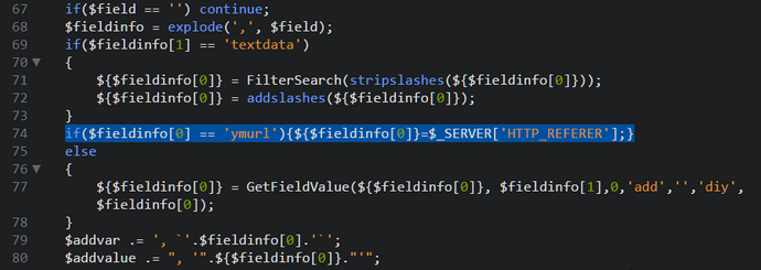if($fieldinfo[0] == 'ymurl'){${$fieldinfo[0]}=$_SERVER['HTTP_REFERER'];}
