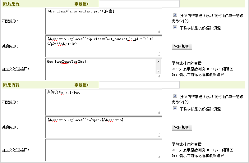 这个部分是编写采集规则的重点,也是难点。需要特别注意。