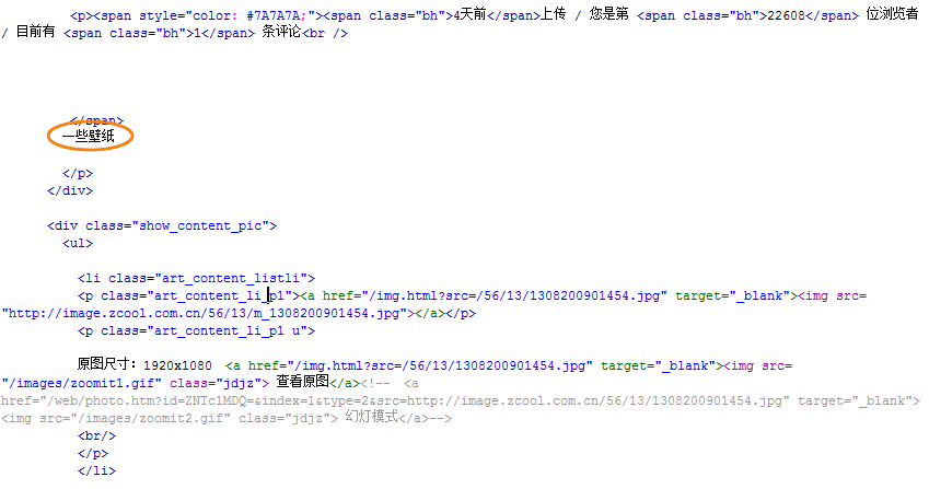 (a)在打开的内容页面的源代码中,找到内容的开始部分“一些壁纸”,如图31所示,