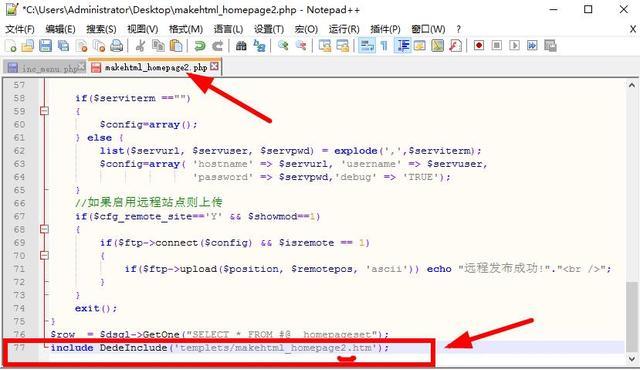下一步:用编辑器打开makehtml_homepage2.php,在底下第77行修改一下,