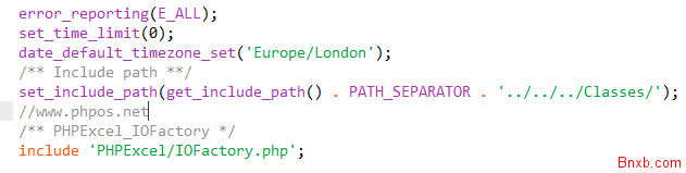 设置错误报告、设置时区、设置程序运行时间,当然,这个运行时间可以不设置、设置PHPExcel类的类库存路径,然后,引入IOFactory.php文件,这个文件是最重要的,本功能就是通过这个文件来处理的,这几个设置代码如下: