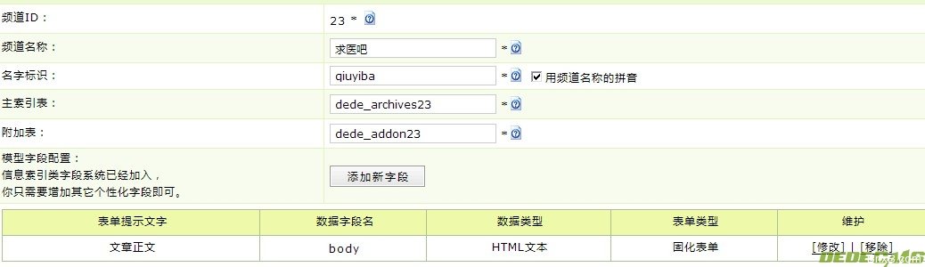 这个dede_addonX就是刚刚我们建立的两个数据库中的一个,是一个附表。