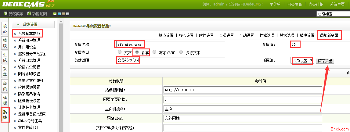 点击保存变量即可(变量值10表示签到增加10积分),如下图所示