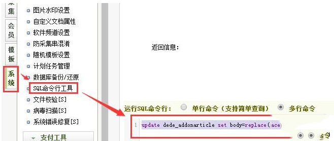 1、后台——系统——SQL命令行工具,之后输入如下代码: