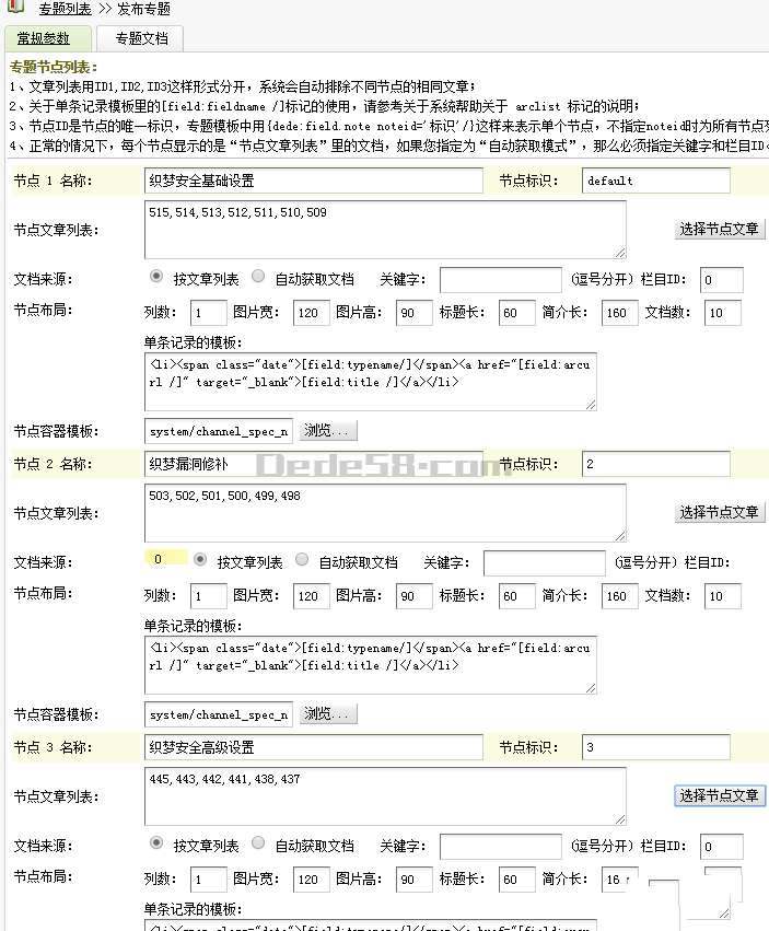 如果专题只需要3个节点,那么剩下的节点就可以不用设置了,完成后点击下面的“确定”按钮提交专题,如下图: