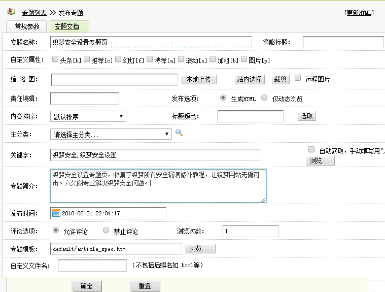 然后点击上面的添加专题,对专题基本信息进行填写,如下图: