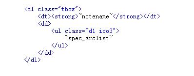 打开templets->system->channel_spec_note.htm设个模板文件,我们可以看到这就是dede默认的列表样式: