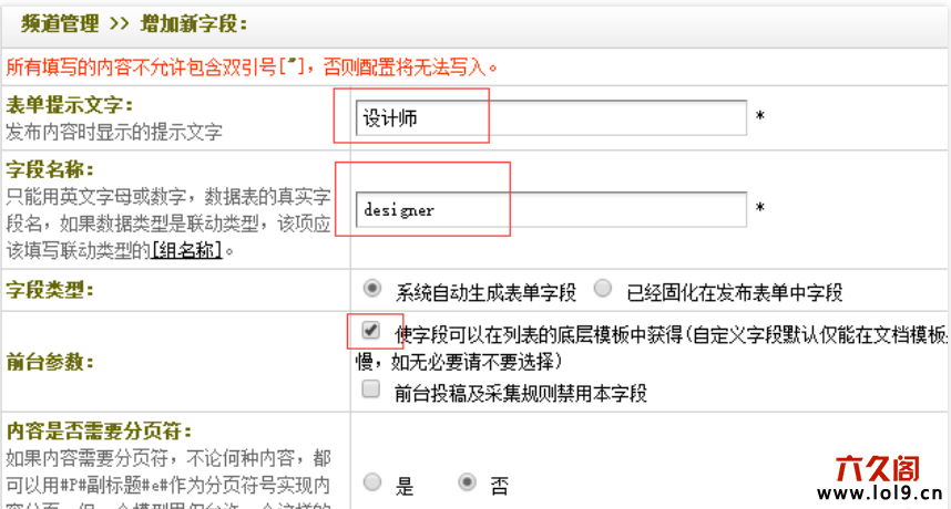 ①核心 -> 内容模型管理 -> 普通文章 -> 字段管理 -> 添加新字段(designer);